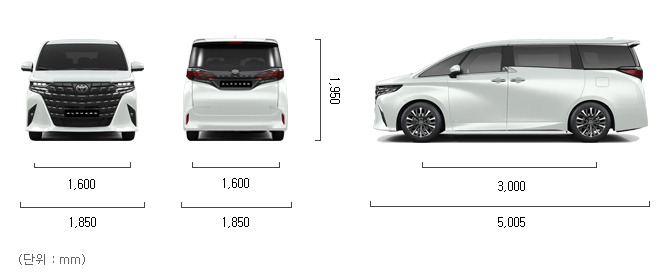 신형 알파드의 외관 디자인은 압도적인 전면부가 가장 큰 특징입니다. 대형 크롬 그릴과 세련된 LED 헤드램프가 조화를 이루며, 이전 세대보다 더욱 고급스럽고 현대적인 이미지를 완성했습니다. 측면은 긴 휠베이스와 매끈한 라인으로 균형감을 주었고, 후면부는 입체적인 테일램프로 웅장하면서도 세련된 인상을 줍니다.